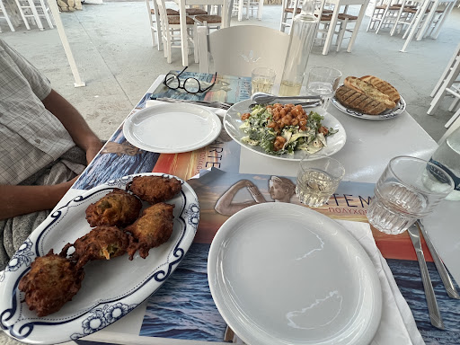 Read moreWe were the only ones being served in this seaside Taverna. The waiter was less than welcoming, abrupt, and unhappy. The chicken salad was like shoe leather, when asked he said it was fine chicken. Overpriced house bad wine @7Eu 1/2 liter. Rest of dinner was basic greek imam, beetroot from package. 4Eu little breads, became donkey food. OK for 6Eu beer by the beach. Otherwise much better...