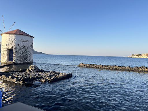 As we were eating dessert, the restaurant was emptying out considerably as the lunch service was wrapping up. It was an interesting dynamic. On the bright side, nobody else was coming in so we could sit as long as we wanted to take in the scenery. The setting by the mill is cool. On the weird side, you felt like you were just sitting in a half closed restaurant. The patron who had a table in the corner laid down on a ledge and napped while his female partner sat. On the other side patrons were laying out on deck. Quite interesting. Greek chilling at its best. Maybe I should have ordered that 3rd bottle after all!