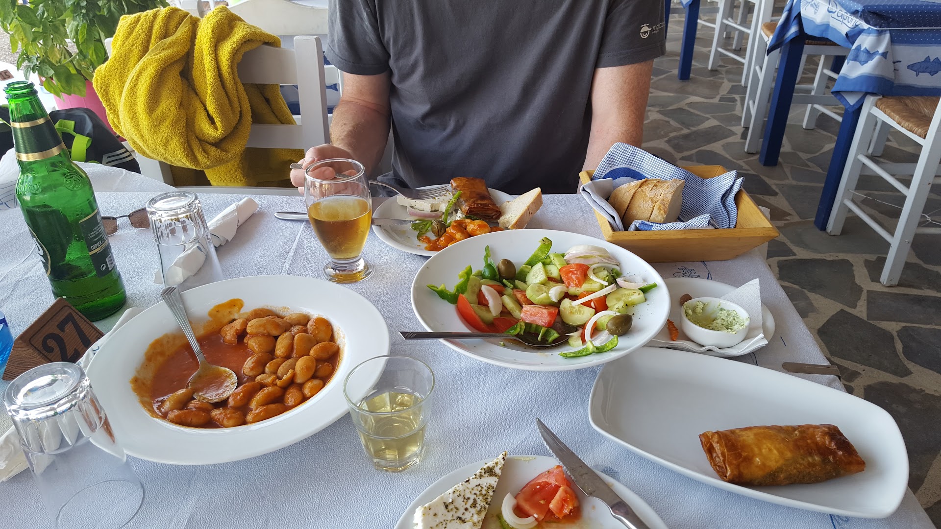 Read moreThis is a lovely taverna which, if you concentrate on the view to the left (as you look out to sea), is set in a beautiful location. For me the area is spoilt by a loud and brash coffee bar taking over the beach and a hideous hotel both on the right. To the left and in front is a quintessential Greek Harbour and view to some more islands. Why have they let this little bit of heaven be so spoilt I will never understand. But the good news is the taverna still serves some of the freshest sea food and authentic dishes at good prices. A small family run venue that invites you to relax and enjoy your meal, no hurry here. You can't hear the bar but you can hear the sea lapping the shore just below your table. They serve fresh lobster from the tank (massive tank on the wall with loads of space for them to live) local Retzina, silky tatziki, good beer and all the other dishes you expect and would want. We have been coming for years and will continue to...