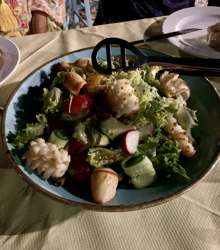 The refreshing salad was a perfect starting point - nicely balanced in acidity and sweetness. The grilled octopus has been the best on the island - crispy outside and still juicy and tender inside. Also very recommendable were the linguini with fresh tuna. The pasta was al dente and the taste an adventure of the senses.
