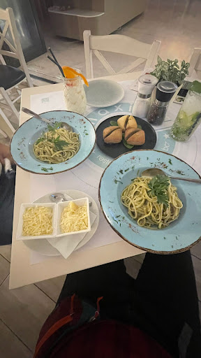We left a big tip regardless as it was such a nice meal. We came back for a lunch on another day and the food was also lovely - the mojito salad and the Napoli pasta! The salad was full of flavour but we preferred the pesto to the Napoli...