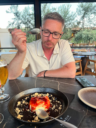We booked a table for 7.30pm and when we arrived it was very quiet but by 9pm it was very busy, so if you're looking to eat from 8.30pm onwards, I'd say make sure you book. Excellent service, food was very good, my partner had the Greek Salad which she said was the best she'd ever eaten and although I'm not a salad kinda guy, I have to say, it looked Excellent. I was disappointed that there was no Ribeye Steak due to being sold out so had to opt for Sirloin which is not a cut I generally would choose but it was nice and cooked well. Cheesecake at €13 I thought was a bit pricey but had to try it, my god am I glad I did, absolutely beautiful and it was large enough for the two of us BUT I could have absolutely devoured it myself. The evening finished off with a complimentary glass of something, the taste and smell of what ever this was again, beautiful and tasted so different to the other cheap nasty stuff the other restaurants are throwing away at you at other restaurants. We picked this place from the reviews and glad we did, yes it's more expensive than your normal places down though what I would call the main strip but you do get what you pay for. If you don't mind spending a bit extra you will get a very good meal and Excellent...