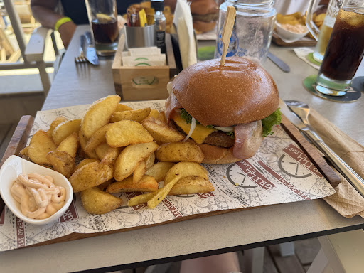 We ordered bacon burgers with potato wedges and two ham and cheese toasties. The portions were really generous, and the prices were very reasonable, around €10 for the burgers and just €3 for the toasties. The food itself was delicious and freshly prepared.