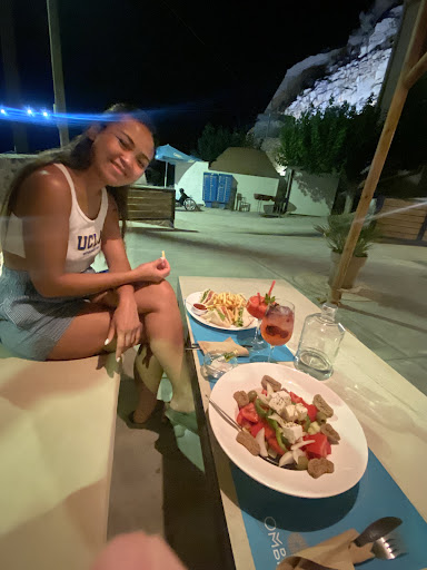 Read morePerfect patio location 100 meters from the beach. Simple food. Ceasar Salad with chicken needed salt and lemon...but was generous in size. Brown bread with turkey and cheese (simple sandwich) was 2.5 euros and a great choice for kids. As always...Mythos draft did not disappoint. Stop for the beach...stay...