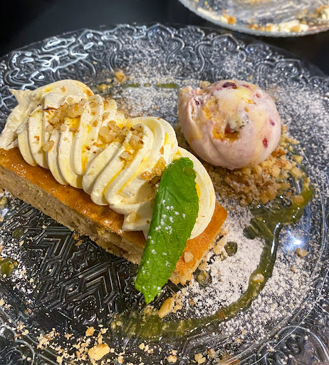 Dessert was the perfect way to end the evening. The warm Galaktoboureko, with its rich custard filling, was complemented by two scoops of ice cream: one with chocolate-orange notes and the other a creamy yogurt with red fruits. Both were delectable and brought a wonderful balance of sweetness and freshness.