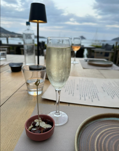 We ordered a sea bass cerviche which was served in a pineapple mango sauce. It was fresh but only okay. For the entrees we had a cheddar burger with French fries and a margarita pizza. The pizza was amazingly delicious, the burger on a 1 to 5 scale was a 4, so that’s a definite plus! The owner came over to introduce himself and bought us a bottle of ouzo which was a very generous gesture.