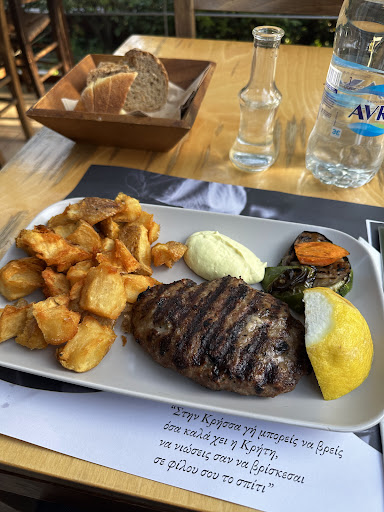 Nice Cretan taverna, quite a few options to choose from. The staff is friendly, you get water, bread and a small appetizer + a generous vial of rakia on the house and also a digestive at the end. The food is really good, I have ordered a bifteka filled with gruyere and I loved it. The only feedback I have is the grilled vegetables were literally four small pieces, maybe add a few more. For dessert, I had the orange pie wjth ice-cream, huge portion and very very tasty. The ice-cream was a bit meh, but the cake itself was amazing. Overall, I liked it, I would definitely return. Also, very good prices too and interesting...