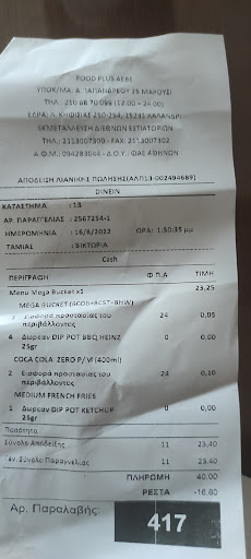 Read moreΔυστυχώς μετά τα από 2 χρόνια που είχα κάνει καλή κριτική τώρα ήρθε η ώρα να την αλλάξω... Μεγάλη αναμονή, μπέρδεμα παραγγελιών δλδ δεν υπάρχει προτεραιότητα φανταστείτε ήμουν το 169 και έφυγε το 178 και όχι δεν πήρε μόνο ένα νερό. Όταν πήγα να ρωτήσω γιατί αργή η παραγγελία η απάντηση ήταν άμεση και κόφτη... Περιμένουμε ένα προϊόν.... Όταν μετά από 40 λεπτά αναμονής και είχαν φύγει μετά από μένα 7 παραγγελίες ήρθε η σειρά να την παραλάβω. Πάντα ελέγχω την παραγγελία μ να δω αν είναι όλα σωστά που θα έπρεπε να το κάνουν και οι ίδιοι. Ελπίζω να μην έγινε επίτηδες επειδή τους έκανα παράπονο για την καθυστέρηση, ξαφνικά βλέπω ότι λείπει ένα προϊόν και ο προϊστάμενος τα κοίταξε ένα ένα και δια μαγείας εμφανίστηκε από πίσω ένα χέρι α ειναι και αυτό. Λοιπόν η κοπέλα το έκανε επίτηδες γιατί χωρίς να ξέρει τι λείπει του το έδωσε.... Αλλά δεν ήξερε σε ποιον πήγε να το κάνει αυτό, που την έχω πατήσει αρκετές φορές είχαν ξεχάσει και την μαγιονεζα που είχα πληρώσει τις έβαλαν και αυτές γιατί δεν είχαν βάλει τπτ από σάλτσες. Επίσης έχουν ένα άτομο στο ταμείο για να εξυπηρετήσουν πάνω από 20 παραγγελίες εκείνη την στιγμή, ένα άτομο να φτιάχνει τα εκει πακέτα ΚΑΙ 2 άτομα στο delivery. Δυστυχώς δεν υπάρχει οργάνωση και δυστυχώς δεν λέγεται fast-food αλλά slow food. Δεν υπάρχει οργάνωση στην παραγωγή αλλά ούτε και στο πακετάρισμα. ΔΕΝ ΥΠΆΡΧΕΙ ΠΡΟΤΕΡΑΙΌΤΗΤΑ ΕΊΝΑΙ...