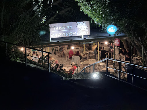 The restaurant is situated on the beautiful Evita Bay beach. Natural cove that offers wonderful swimming. Recommended to arrive early for the best selection of beds (6€ for two beds and umbrella). Sundays on the beach are especially busy, so either avoid (if you you don't like loads of people /families) or arrive early. The beach staff are wonderfully helpful and friendly. Karavostasi taverna is second to none, offering beautiful secluded dining, service is friendly and prompt, the food, especially traditional dishes are excellent. If you're expecting pizzas or burgers, the same way that are back home, then stay at home. You come to Crete to experience the cuisine and the culture (although pizza and pasta are very good). It all goes down very well with the local raki ;) Prices force two (shared salad, two mains and drinks) app 25-30 €. You can easily while away for three hours over lunch before returning to your beds on the beach. It was our first time in this area of the island and we go home with the desire to return again as...