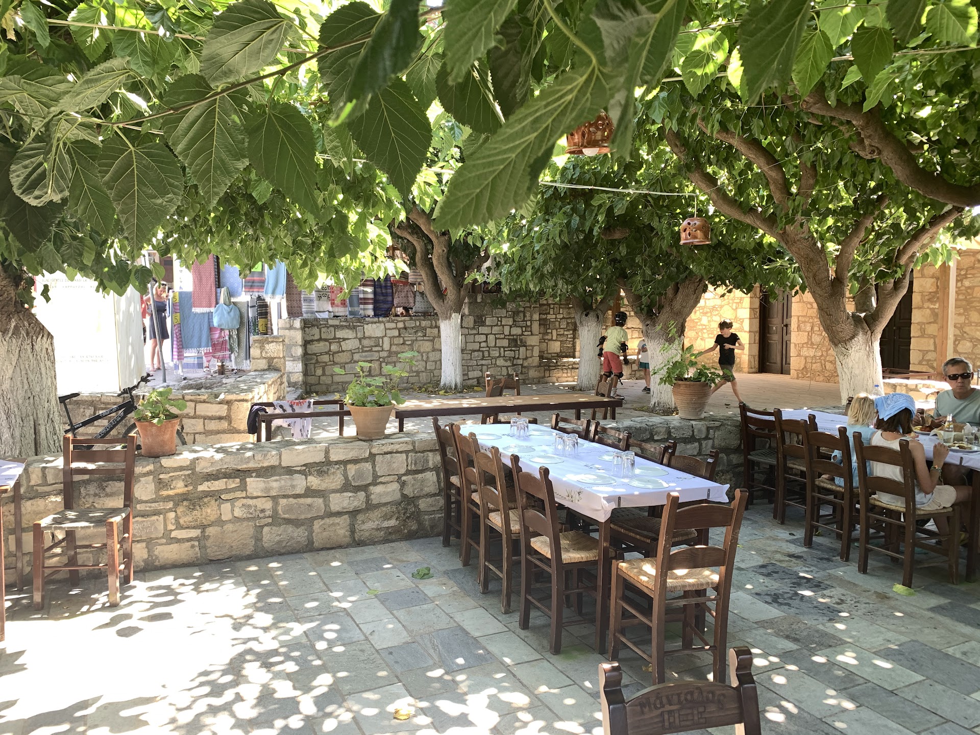 Read moreWhat a cute place! Nestled amongst some trees with an amazing view of the countryside. It was nice and breezy - a perfect place to cool off and have a meal. We went vegetarian today and had the house salad, Briam and Gigantes. Now I make Briam and Gigantes all the time so I know how these dishes should taste. Let me tell you, they were absolutely delicious! Home made and not just your standard throw down something for the tourist. The house salad was equally delicious with just the right amount of dressing. Great service, friendly staff, authentic feel....