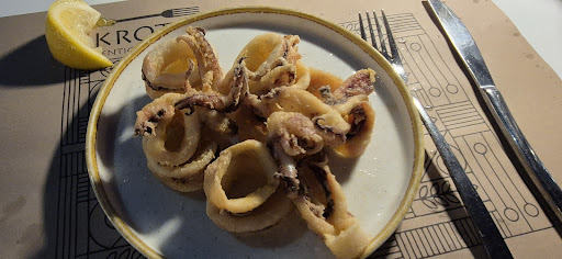 We had an amazing octopus and Fava beans puree as starters, they didn't serve us the bread we asked to the waiter when they served the starter who totally forgot after as he carried on cleaning tables while our starter was getting cold and not bread ...we asked to an other waiter (the guy who takes customers to the tables) and when we almost finished the starter the bread arrived.