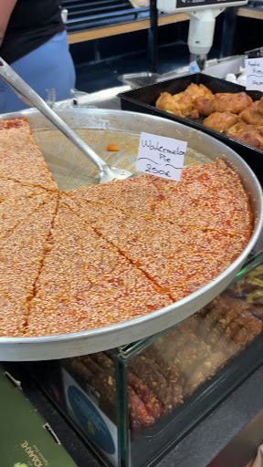 A bright, inviting bakery that catches your eye the moment you walk in. The counters are full of tempting pies, sandwiches, and sweets, and the smell alone makes you want to try one of everything.
