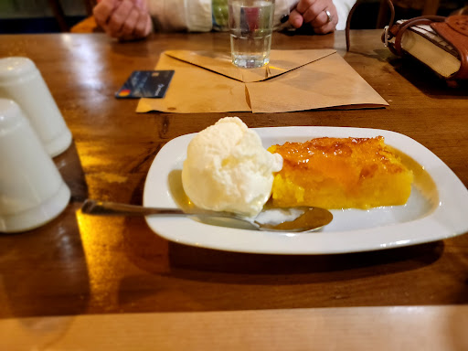 Food was very good. No goat stew or swordfish today. Went with zucchini balls, grilled sardines, and rooster pasta. All very good. Chicken was super tender. Service was friendly from the young gentleman but definitely a little slow. It took 15-20 minutes to get our check and over 40 for the main course. The owner was there but he kind of looked like he was goofing off and the kid was running around in 20 different directions before the owner started helping him. Took a star off for the table behind us for smoking and a lot of mosquitoes but I guess thatās a cultural thing they donāt usually control.