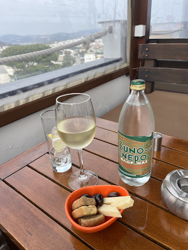 Read moreBest old school bar in Milos! (This review is for the upstairs bar.) Amazing 180 degree view, like being on the bow of a ship. En Plo means ‘on board’ so it naturally has a nautical theme with a captain’s wheel and boat ropes. Great Greek wine list and the cocktails looked fun. You get a little cheese and olives snack with your drink. Great value. Staff very chilled and friendly. Nice mix of Greeks and foreigners. Totally unpretentious. I’m definitely on board with several visits over my week stay in...