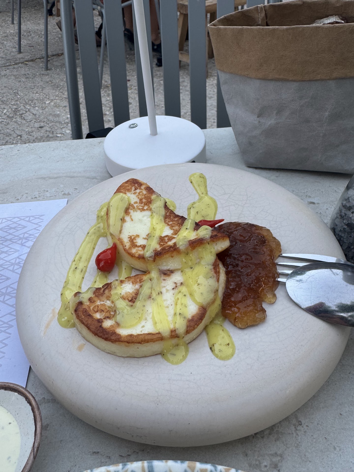 We ordered the talagani, dolmades as starters, the Niçoise salad, and the lamb neck. The starters and salad came out together, and both the starters has the same sauce all over the top. We noticed that the same sauce was on top of a lot of the dishes coming out from the kitchen (and the table next to us complained as they didnât want sauce all over the top of their kebabs). I personally thing a good restaurant shouldnât be using the same sauce on so many of their dishes.