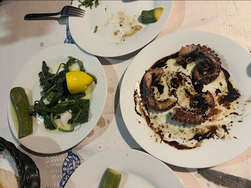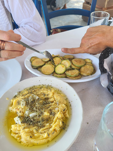 the portions were really small, with zero herbs or spices, everything was very plain. the owner Anna didn't want to accept that her portions are small, i can say she went offensive when we commented to her on her portions. i love seeing kids working in family business, but her granddaughter was not happy. we put our own oregano at the fava, i didn't dare to ask her for some!! she even accused me that i didn't tell her when i asked for the bill that i want to pay with credit card instead of cash that i guess she wanted, by saying that i should have told her since the beginning... great customer care!! i wonder why this place isn't closed yet. and more boring negative details to write here. two positive things: the shrimps were well grilled, and the sea is next...