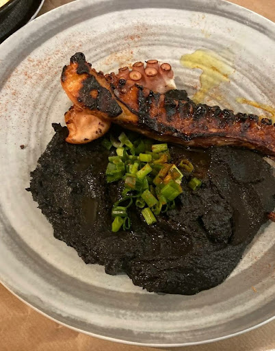 For our mains we ordered: roasted sardines & grilled octopus with . The roasted sardines were cooked and sauces to perfection - just fabulous. The octopus was perfectly grilled, and the was something of a revelation. It’s hard to capture the consistency. The best we can come up with is a light, silky aoili. However you describe this it was absolutely delicious!