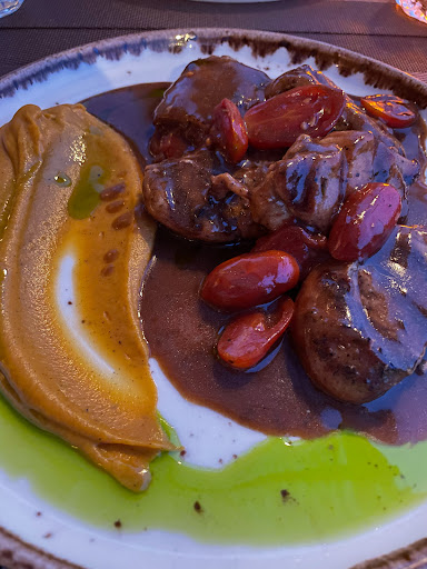 For our mains we ordered: Kopanakia (chicken legs with Aegina pistachios, dried grapes, baby potatoes and grape syrup); and, Pork Tenderloin (sweet potato purée).