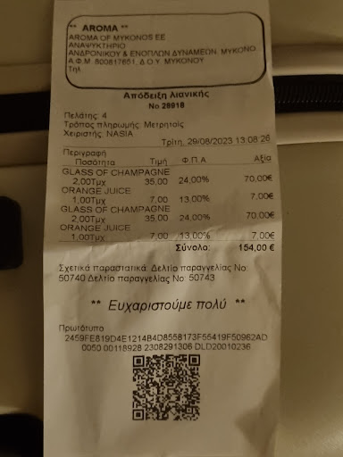 Read moreIt is located at the most central intersection of Mykonos Town, on Matogianni Street and has tables on the pedestrian street, but also inside the caffe.