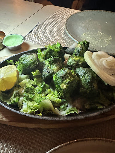 We ordered onion bhaji and veg pakora, both drenched in oil and tasted of overused oil. The onion bhaji is usually supposed to be crispy but was soggy and oily. We sent them back. We then tried the mint chicken, which was undercooked, hard to cut, and had a mint layer full of artificial color. The marinade clearly hadn’t penetrated the meat. We canceled our entire order after realizing the food isn't really authentic and that the 3 bad dishes had already killed our appetite. Additionally they charge for onions on the side (5€) really surprising, as that’s usually complimentary all around the world.