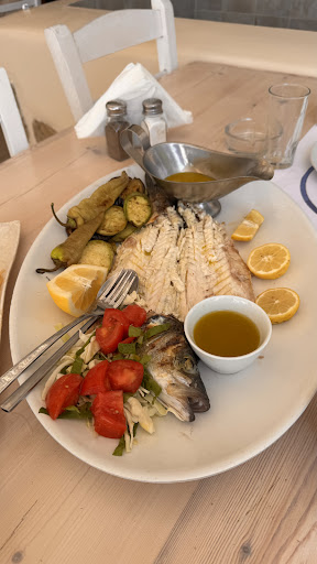 THE WORST MEAL IN GREECE. DISGUSTING OLD SEAFOOD, I'm sorry to have to leave a negative review but with the carelessness of this restaurant I think its best other potential customers know what they are in for before visiting, as I wish I was. This is the only restaurant I have been in my life and out of all the countries I have travelled to that the food was so disgusting we struggled to eat it and in the end, after no consideration by staff after pointing it out, we left half of it. If we weren't as hungry as we were and weren't asked to still pay for all the dishes, especially at the overpriced amount they commanded, we would have left all of it. The two fish dishes which we complained about because they smelled, were clearly not fresh and both squid large and baby squid had not been cleaned and still had their guts, beak, quill and eyeballs intact. The baby squid hadnt even been cleaned. The most revolting seafood I have ever tasted in my life. The waiter tried to tell me the guts left intact inside the squid were actually the best part, the egg sac! But, did you know squid LAY eggs? They don't keep egg SACS inside them. Complete lies told to disguise the laziness and lack of consideration by this tavern who don't want to hear or deal with any customer complaints. The waiter also proceeded to try and defend the disgusting seafood by informing that the insides were left inside because they are fresh while at other restaurants if they clean the squid for you it means they are frozen. But when ordering the baby squid, I noticed an asterix and another waiter advised me that the dishes with asterix iclude frozen seafood. So another complete contradiction. Squid should not smell fishy if it's fresh and if the squid is big enough to have eyeballs and a spine it should be cleaned out, not deep fried whole and served to customers to eat entirely. The baby squid were too battered and fried in old oil that did well to attrmpt to cover up the old fishy flavour but in the end just made us feel unwell. The zucchini fritters were filled with other ingredients like carrots which weren't listed and just tasted like grain and flour, completely tasteless. We have had zucchini fritters almost at every greek restaurant we have been around Greece and these were the worst. The house wine was atrocious too. The only decent item was the mousakka and the complimentary shots and polenta slice with cinnamon they give to all tables at the end of the meal complimentary. The shot was actually very nice. The location and atmosphere of sitting on the beach was the only pleasant part about this experience but not enough to ever wish...
