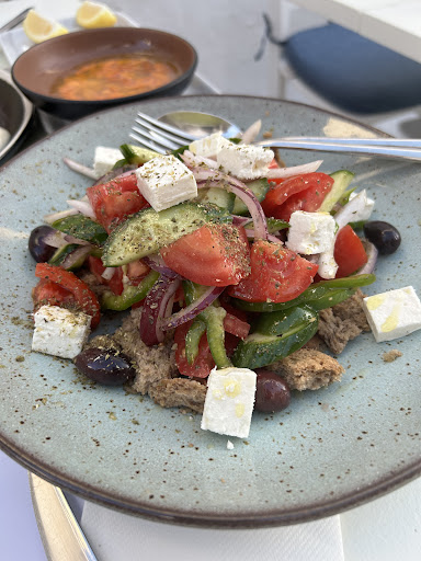 So based on reviews, we were very excited to try this place. We'd had THE BEST MEAL IN MIKONOS AT FUNKY KITCHEN and second best at Sale e Pepe, and so we were looking forward to this place. Oh boy... we were so disappointed. Key takeaways: the food is bland, lacks love and originality. It really feels like food dishes out to tourists that is devoid of an understanding of and respect for fish. The best example of this is with the seabass: this is a fish which should be the star and cooked plus presented to demonstrate this and instead this soggy seabass was presented on top of prawns and mussels ???? Just, why? So now when you slice into the seabass it all falls into this seafood sauce and gets lost amidst it all. It makes absolutely no sense, is wasteful and is in poor taste. The prawns were super overcooked. Also this weird dish was presented without bread - god only knows why this chef/restaurant think this is a good dish. The octopus rice dish is suuuuuuper rich, just overwhelmingly so, it needed some parsley and some lemon to break it down, so again, no refined understanding of flavour here. We would not return. They also messed up the order of the people sat beside us and were super rude to them!...