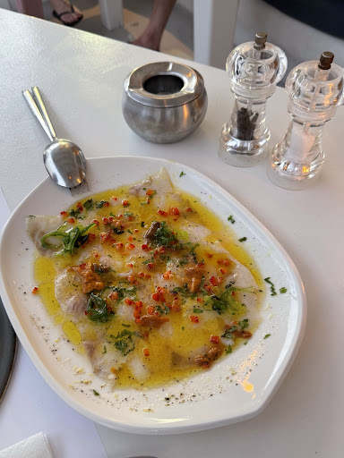 Read moreThe shrimp ceviche is very tasty(3 stars for this), but the mussels in the main course (sea bass) are not fresh, 2 of them even smelly, I told the waiter, he reported to manger/owner there, then he came back and said sorry to me, nothing else. I’m not trying to blame the waiter, he is nice and I know he has nothing to do with this when his superior doesn’t offer him a solution. My point here is when the problem happens, this restaurant just apologized without any actual action, they will not change a new one for you. They behave like “if you have some stale seafood, WE ARE SORRY FOR YOUR BAD LUCK.”That’s it. Their service and food quality just doesn’t deserve this price, you have better choices in Mykonos with this price. Btw the usual price of still water is 2-3 euro but they charged me for 5 euro. Last not less, be careful when you order mussels and shellfish...