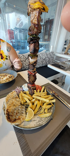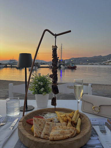 The Greek-style décor, with its white and blue tones and rustic details, transports you directly to the Aegean islands. The menu offers an exquisite selection of typical Mykonos dishes, prepared with fresh, high-quality ingredients. From perfectly baked moussaka to juicy souvlaki, each bite is a delight for the palate. Don't miss the mostra, a traditional Mykonian dish featuring rusks topped with kopanisti cheese, fresh tomatoes, and a drizzle of olive oil—simple yet bursting with flavor. The seafood is particularly recommended, with authentic flavors that make you feel the sea breeze with every bite.
