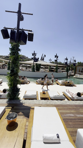 We really wanted to like this place. Letās start with the good. Itās right in front of a lovely beach front. DJ played pretty good music even though no one was dancing. Unfortunately the bad outweighed the good. We had a big group of 11 people and reserved two cabanas as well as had dinner reservations. The pool was not as clean as it should be. While we understand some things canāt be controlled, for how expensive this place was, there should be staff regularly cleaning it. The restrooms on one side were decent enough, but the restrooms in the opposite side near the restaurant were absolutely filthy and smelled rotten. Keep in mind, toilet paper cannot be flushed down the toilets here so people have to throw it in the trash. This was fine and wouldnāt be an issue but of course, they did not seem to have any staff maintaining this restroom regularly which probably led to why it was dirty. There was a large dead cockroach and garbage that floated into the pool and seemed to remained there the entire time we were there. They seem to have plenty of staff to serve drinks at the pool areas as well as to performatively bring out food and cut up meats at the restaurant. Iām not sure why they donāt invest more staff to maintain cleanliness. We had dinner at the restaurant and the food was unfortunately not consistent in good taste. The red meats were delicious as well as the pasta. However, the mussels came out with some cold, some warm. The chicken dishes were dry. So dry that one person in our group refused to finish and eat the dish after taking a couple of bites. She did give feedback and one server said they would take it off the bill, but we were still charged for that one dish. When we brought that to attention, another served told us that the chicken was already half eaten which wasnāt true and the fries that came with it werenāt even touched. We didnāt want to argue so we still paid in full and paid 10 percent tip on top of the hefty bill. For drinks and snacks at the cabana, this was a separate bill and we were told we would be charged 10 percent tip but they sneakily did 15 percent. When confronted, they said it was for the service which was mid at best. Not quite sure how the cabana side thought they deserved a higher tip than the restaurant side. We again tried to give feedback and shared how they could have improved but they didnāt seem to want to listen nor did they apologize for where they fell short. And honestly, for how expensive everything was, we expected better. If you are looking for a good beach club, you are better off picking elsewhere. There are plenty in Mykonos that are nicer with better service, better food, and more clean. Giving this place 3 stars is a bit more generous but it was what the...