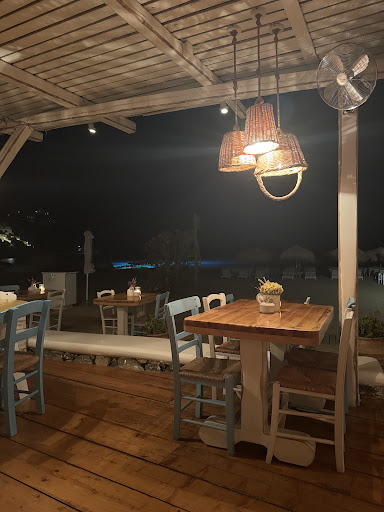 If youâre entering the restaurant from the street, you wonât expect what awaits you around the final corner, when your feet are already sinking into the warm sand: a patio-style entrance in typical Myconian design opens up into an authentic Greek tavern â airy, inviting, with rustic yet harmonious interiors, and a stunning view of the sea.
