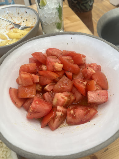 Beautiful restaurant, but thatâs all. It is the cheaper of all the restaurants on that beach but you get what you pay for. Unfortunately, the food was pretty bad and the service wasnât the greatest. I work in the service industry and I hate being THAT person. It takes a lot for me to complain the way I did. 2 seems to be the magic number there because thatâs how many times you have to ask for something. For starters, We had to ask for water 2x. It was 3 of us. My friend ordered the Shrimp Pasta, it lacked flavor and was greasy. My Brother ordered the grilled chicken, that too came out greasy and no flavor. We asked for ketchup 2x. It came out after he ate his food. I ordered the fillet fish. My whole plate was room temperature. I donât know what kind of fish it was, so I am not sure if thatâs what itâs supposed to look like that cooked, but being that it didnât come out warm at all, it looked like it was still raw. It was pinkish in the middle. I eat sushi, so I just tried really hard to get past it. When we originally ordered the food, I had asked for some tomatoes to eat with it, like a small side dish. The server told me he will ask the kitchen if itâs possible. Granted heâs doing his job, however, they have tomatoes on almost every other dish on the menu, this shouldn't have been an issue. Well.. all the food came out and not the tomatoes. I had to ask 2x for them. They finally came out in a exaggerated amount. I had also ordered French fries and they brought me the fries from the appetizer menu that had feta cheese and tomatoes on top. Granted, this isnât that big of a deal but I just wanted plain fries. At this point we are all over the experience. None of us even touched it. I asked for the bill, the waiter was confused as to why we wanted to leave when we barely ate the food. I explained everything to him and he apologized. I get it, he tried but also, itâs a no for me. Everything was just bad. Note: I took these pictures when we were leaving the table. The almost empty plate with the few fries, that grease is from the grilled chicken. The tomatoes plate, I had already eaten quite a few from it, thatâs just how full...