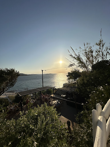 I normally don’t say things are hidden gems because I feel it is overused, but this place truly is one. It’s just a couple minutes walk from the Fabrika station and it’s on a small hill. It was a little difficult to find because the property surrounding it seems to be under construction (no noise, don’t worry) and the signs weren’t great, but if you go down the stairs on the left, you will eventually find it. When we arrived the first night, there was only one other party there. Only a few more tables filled in by sunset. They are sectioned by no minimum spend, €30 pp, €40 pp, €60 pp and so on. Our view was absolutely incredible. There was a DJ playing chill music, not party but not slow, it was honestly perfect for the sunset vibe. The decor is so pretty. The menu is huge. We weren’t very hungry either time we went but we did try the Trio of Mediterranean Spreads and the Fresh Quinoa Mosaic salad. Both dishes were actually vegan (salad optional) and there is a vegan moussaka as well, I wish I tried it! Both were delicious. The dip trio came with an insane amount of fresh chips and the sauces were amazing. The salad was very fresh and flavorful. It seems the dip trio is a popular choice, I noticed multiple people ordering it. The service was amazing, extremely friendly staff. The atmosphere was perfect for us, pretty chill, but we only stayed til about 9:30 pm both nights. It was great having no wait and multiple seating options. It was so great being away from the packed mediocre bars in the town and in our own little...