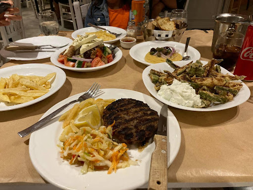 Came here twice whilst in Mykonos. Very very good Greek salad and very attentive staff. The fresh balls of the day were excellent, the best we tasted on the whole 21 day inter island holiday. Lovely free home made tsipouri for us and ice cream for the little one. It’s a good, straight forward traditional taverna which is as much for the tourists as it is for the locals. Well worth a stop off here if you are going between beaches. It’s behind the supermarket and has ample inside and outside seating.
