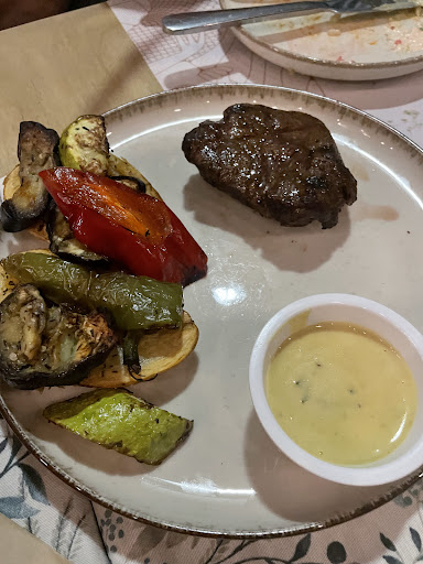 We were a big group so we tried many things. Main review is that the starters are incredible and even beat the main dishes. The service is also amazing and the owner is incredibly kind and generous. Detailed review: The Kokkini Patata salad was very unique and really good. The Bruschetta is HEAVENLY... Tje mixture of caramelized onions (sweet) with grilled vegetables is very smart and it was my favorite dish. The Zucchini rolls were also great and I would say are a safe bet. Fried olives (we got on the house) were also unique and pretty loved. Feta Saganaki I had mixed feelings about... it was pretty intense but people on the table loved it. it's pretty controversial. The caramelized chicken was a solid 7/10. The home made kebab was was really nice (8/10). The mushroom risotto was a great vegan option! P.S. some pictures feature halfly eaten plates because we were impatient to wait...