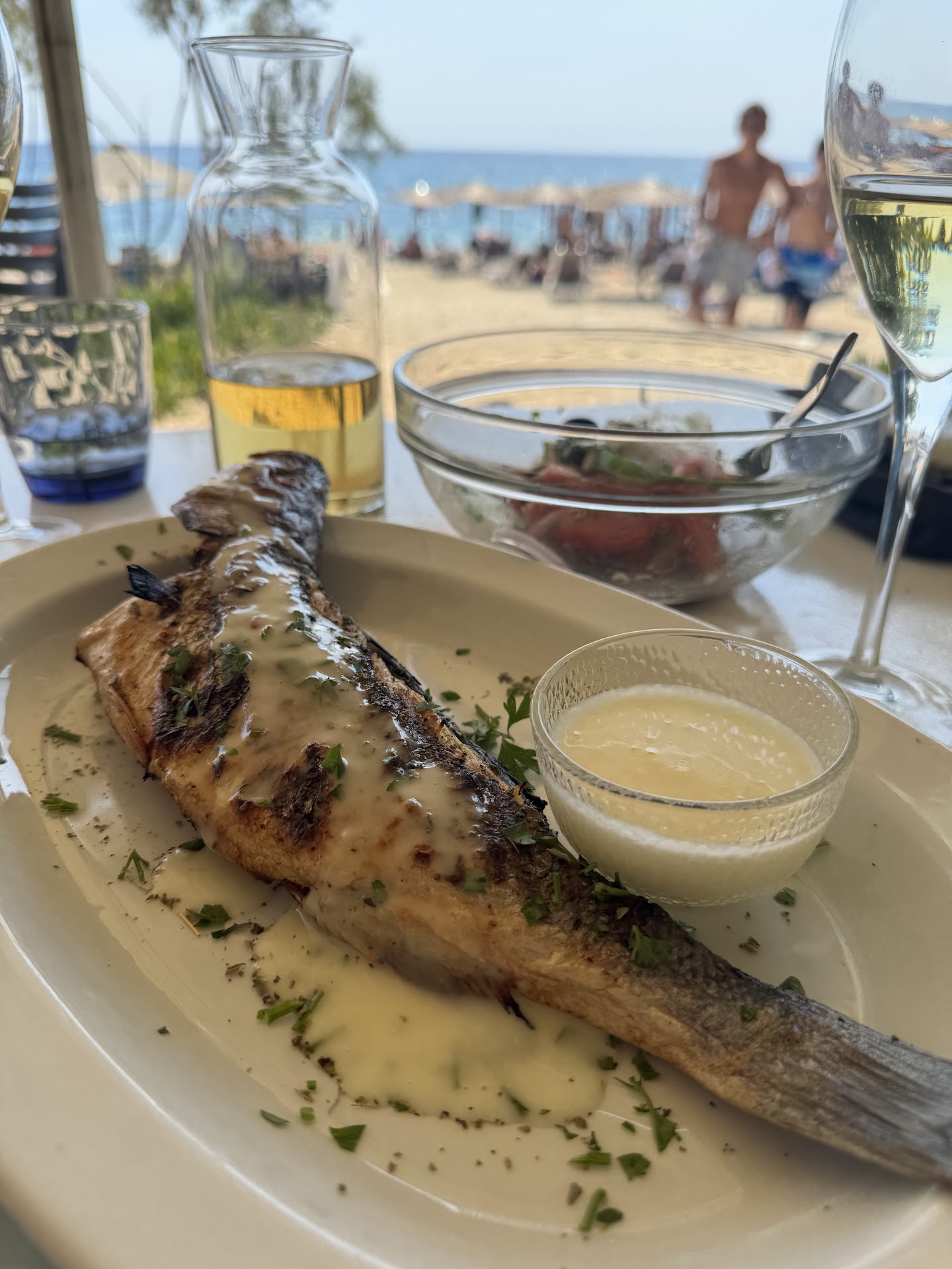 We used this restaurant’s beach area for three days and had our lunch here each time. The food was consistently good and never disappointed us. On the last day, we had sea bass, which was a bit pricey (19euro) — we weren’t sure why, but overall we were satisfied with everything. In Agios Isidoros, there really aren’t many other beachside restaurants to choose from, so this is a solid option. Sunbeds and umbrellas are free, but note that payments at the beach...