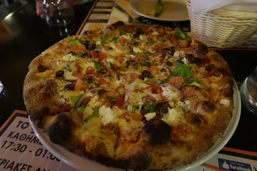 It paid off. The pizza (I got the Cretan) was delicious, great base and flavourful fresh topping. My wife got Penne Arrabiatta and it was also delicious. Well priced too. With drinks we paid 18 euros for one of the better meals we've had in Greece. Friendly staff put up with our screaming kid too.