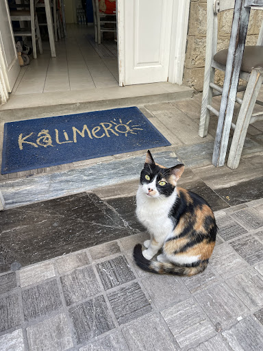 Expected more after reading the reviews. Coffee was ok, the yoghurt with fruits ok but nothing to write home about and i also got what was described as fried eggs with tomato and graviera cheese which was well actually just that. 2 fried eggs and in a small plate 2 slices of tomato and 2 small slices of cheese and a miserably small slice of pepper. I was expecting something more. Well, maybe my mistake. My main complains though come from the place itself. There where only 3 small tables outside, placed one beside the other. It was around 8:30 am and cars and motorbikes would occasionally past infront of us disturbing with their noise an otherwise peacefull place. Then there were 3 dogs walking around and occasionally barking at passing-by cars, people or other dogs. Got nothing against dogs I just would prefer not having them around me while taking breakfast. The, otherwise kind and helpfull stuff were feeding them so that's why they were hanging around. Then around 9 the shop next to kalimera opened and the owner placed a stand full of hats just beside our table, to be precise he almost placed it ON our table . I could tell by his face that he was annoyed by the placement of tables just next to his shop but that was not my mistake. It was a pure lack of professionalism. In a few words a disappointing place to have breakfast and...