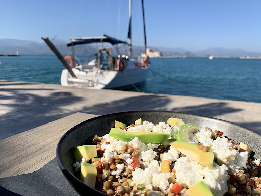 I was pleasantly surprised that our tour company booked us dinner at this fantastic waterfront restaurant along the promenade. So we dined on the delicious salads watching the glorious sunset and finished the delectable desserts admiring the illuminated Bourtzi castle off shore. The chocolate cake was the best I had ever tasted. It was very moist and covered with dark chocolate sauce (a little bitter) and fenced by a ring of raspberry(?) mouss and accompanied by a single scoop of vanilla ice cream. We loved the Chicken Ballotine too: chicken breast wrapped in prosciutto sitting atop a generous mount of deliciously earthly mushroom puree, with some mildly sweet cauliflower puree on the side. The chef was generous with saffron for our Shrimp Risotto dish too. This restaurant was a great change from the typical tavernas we had been going to for the last 8 days in Athens and Santorini. The price range is reasonable and comparable to other tavernas in town. The food is as good as the view!