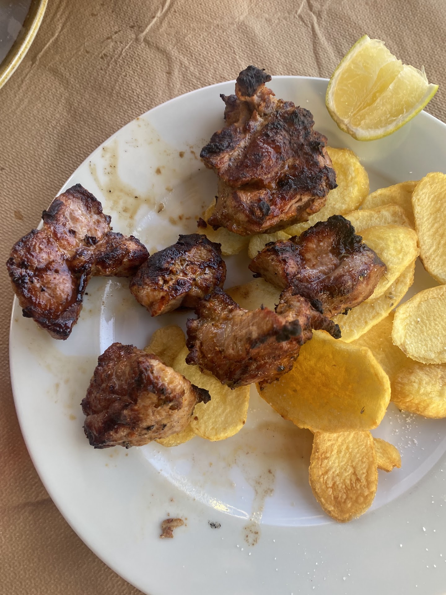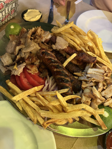 Casual spot to grab food, they’re open pretty late. We got the small mixed grill because we wanted to try a little of everything. It came as a massive platter with all their types of meat - chicken and pork gyro, skewers, kebab, burger patty, and fries. It comes with slices of tomato and onions, and some pita. It was 25 euros for everything which was a great price. We thought the quality was just okay, not the best meal we had but it was a a big portion at...