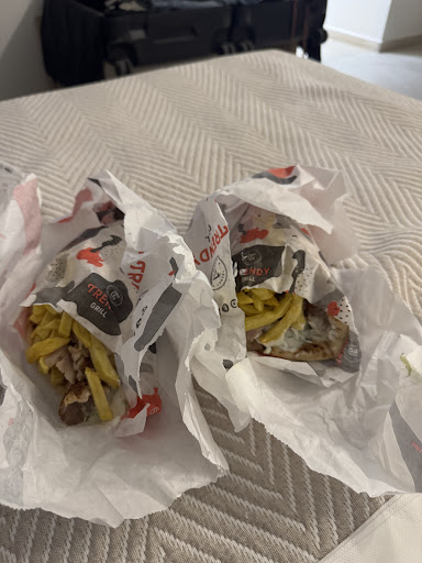 The food came out relatively quickly. The pork skewer was tender and tasty but I’ve had better. My last bite was unusually soft so I spit it out and realized it was still raw. Since it’s a skewer, I had been eating it in chunks without checking if each chunk was fully cooked through. Luckily, I haven’t had any stomach problems so far. The fries on the side are limp and have no seasoning on them. I also ordered a pita which was a very sizable portion. The pita was tasty, but again, not amongst the best I’ve had. The bread could be fluffier, there isn’t much seasoning other than salt on the meat, and the other toppings lacked brightness.