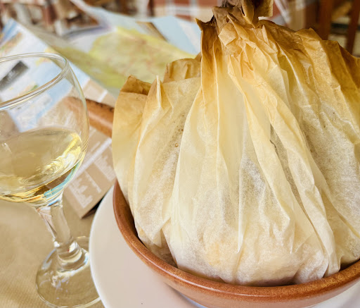 What a lovely welcome here! The owner and server were so kind and gave top notch service. The homemade bread was warm and perfectly cooked. I’m salivating thinking about it! The kleftiko was unfortunately a little dry to my taste. I like when it falls off the bone, moist and juicy. But the cheese with the potatoes was a nice addition. The wine was refreshing and I was kindly offered a second glass on the house. Efharisto! I would definitely return and recommend going round the corner from the tourist traps to find...