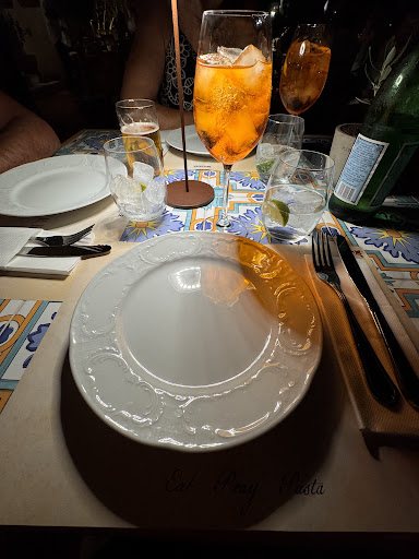 Read moreBeautiful sunset spot, great atmosphere, very poor service and really not great food. The service took too long, the waitress/kitchen got the main and starter mixed up, the Bruschetta was bland, the bread obviously burnt black in places, the salad was really a pile of greens with a small amount of topping and not a great dressing, the pasta was proudly presented in a large pan that wasn’t warm and the pasta spread out across it so it was very quickly cold; the pasta was very al denté. The service is way too complicated with the waitresses carrying trays and folding serving tables and large black pepper grinders which we weren’t even offered and to catch the waitresses attention was a waste of time. The staff are in uniform that makes them look nurses or nuns. Great potential and trying to look very professional and Italian; we were very...