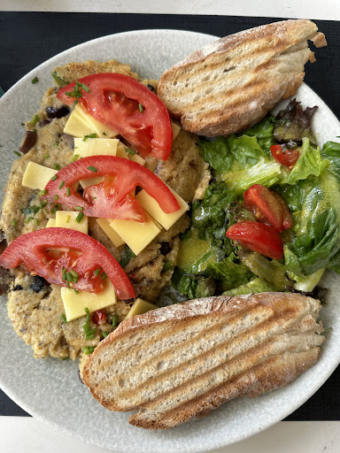 The separate vegan menu had us swooning, and we couldn't resist trying the special vegan omelet with chickpea flour, tomato, caramelized onions, and mushrooms, as recommended by the waitress. 🌱🍄 And oh my goodness, talk about a flavor explosion! Every bite was a symphony of tastes and textures that left us craving more.