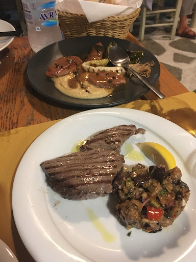 Read moreTiny cute place at chora. It s always crowded so you need to make a reservation. We had a table at the balcony near the view which was amazing. Rich menu with many choices..we did not know what to chose. We had the green salad. Fresh and crispy with an amazing chausse made of louiza plant. simple..could be elevated with some cheese..though still pretty delicious. Plan was to have more appetizers but main dishes were so good that we decided to go for them. We had the musaka that was outstanding(!)and a fish fillet, catch of the day, grilled with grilled veggies. Wine list also was surprisingly good although overpriced. At the end we had the saragli for desert which was also great. Overall: food was delicious and portions veeeery satisfying, wine/beer list well informed, service was fast overall ok given the overcrowded place, ambience is perfect for a nice cosy dinner, prices are a bit high but quality kind of...