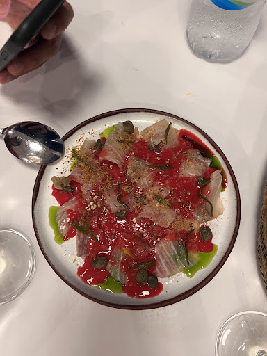 Read moreShould have read the bad reviews before coming here and regret not leaving after being told there was no wine list. The recommended wine was good, but would have much preferred making our own selection from a menu - we gave it the benefit of the doubt after a good wine recommendation, but good wine is where the positives end. The host was rude and ignored their barking pet dog throughout the meal - we are dog lovers, but the pet was clearly not happy and not comforted, and barking throughout our meal. The breads were okay, the potato salad was fine but the popcorn shrimp was inedible. The shrimps were not fresh and overcooked in a batter that was far too thick. We also ordered the fish of the day which was cooked nicely, but the dish was not well conceived and the aubergine that accompanied the fish totally overpowered it and did not compliment it at all. We hadnât touched our prawns and it was obvious by the staff but at no point was there a check back to find out how the meal was. The whole time the hostess was on her phone smoking and telling off her dog but not interacting with guests. We fed back about the untouched prawns to the girl who cleared our plates, but she was defensive and said this was a local recipe and how it should be?! I fed back to the âsommelierâ when I paid the bill, but the prawns remained on the bill. I asked them to be removed as we hadnât touched them. The bill was still âŹ100 without service. I can make exceptions for average food but paired with underwhelming and disappointing service I canât ignore it. Plenty of great local places to eat so save your money and...