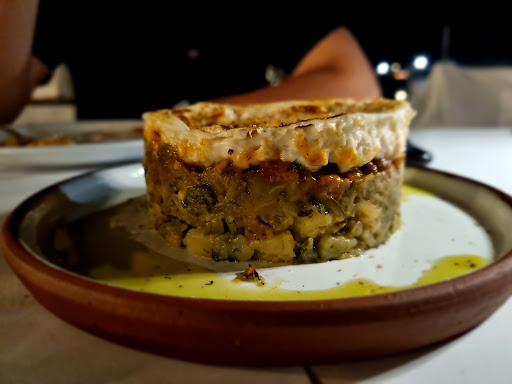 The starters and salad were very good, but very expensive for the portion. As main dishes we had chicken pasta and Moussakas. Chicken was dry and tasted like a normal pasta dish you can have anywhere for less than half the price (costs 21âŹ). Moussakas had too much oil and way too much aneth, to the extent that it didn't resemble a Moussakas at all. Again extremely expensive for what it was (19âŹ).