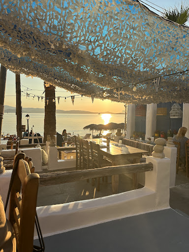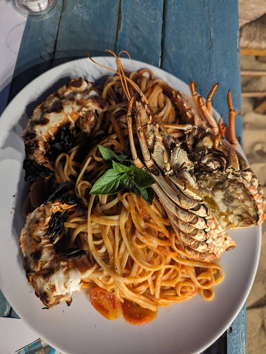 Let's cut to the chase. The only reason you should consider booking a table here is to eat on the beach and watch the sunset. The food is really mediocre at best and their "fresh" but not really fresh fish and lobster is NOT worth it. We ordered the lobster pasta because a few reviews down the picture Melissa posted looked good with lots of cherry tomatoes. We got approx 5 or 6 cherry tomatoes, the lobster was frozen (texture weird) and the sauce tasted store bought. See photos and compare it to Melissa's review photo. So disappointing given the other reviews I've read. Not worth the 60 euros for the pasta. If you want fresh seafood, please go to Apanemi! That place is worth every cent. Also, the feta in the Greek is definitely store bought. Please put more effort...