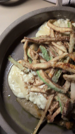 Pictured are the 18 Grapes salad (which had some sort of meat on top that wasnât listed?), fried Naxian gruyĂšre cheese, New Zealand ribs with gnocchi, and fried stuffed calamari. The gruyĂšre was interesting, though we probably couldâve gone without it. The baklava was huge and I wish we had a few more people to share it with!