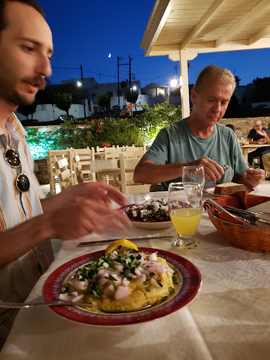 Read moreGreat restaurant with a lot of vegan options! We ate many traditional entries/appetizers that were vegan and could give a complete meal if you care about eating your proteins and vegetables (attention, the sizes of the entries are BIG, so everything we ordered was enought for 3 people) : fava paste, naxian fries, fried mushrooms, and everything was delicious. The people working there are really nice and the place is very traditional. The restaurant has a beautiful atmosphere with a very pleasent view. You can't see the sunset directly, but you can see the moonrising and the sunset colors, we loved our moment...