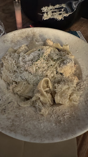 Οι Pappardelle Pollo ήταν επιεικώς ένα αμήχανο και ανάλατο πιάτο. Το κοτόπουλο κατώτερο του αναμενομένου, θύμιζε ζωική πρωτεΐνη από ταχυφαγείο, ενώ η κρέμα γάλακτος έδινε πιο βροντερό παρόν από όσο έπρεπε.